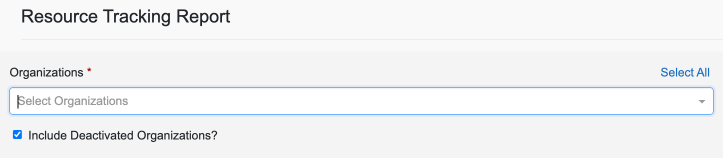 - Users are now able to select multiple or all organizations within a hierarchy when running the Resource Tracking Report.